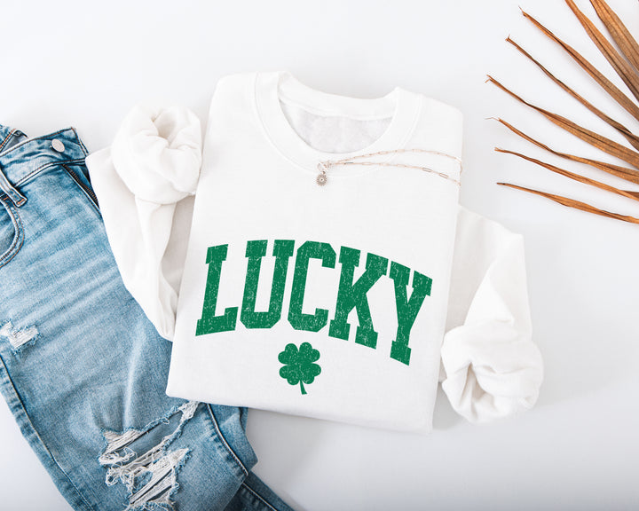 Distressed Lucky Varsity Adult Sweatshirt