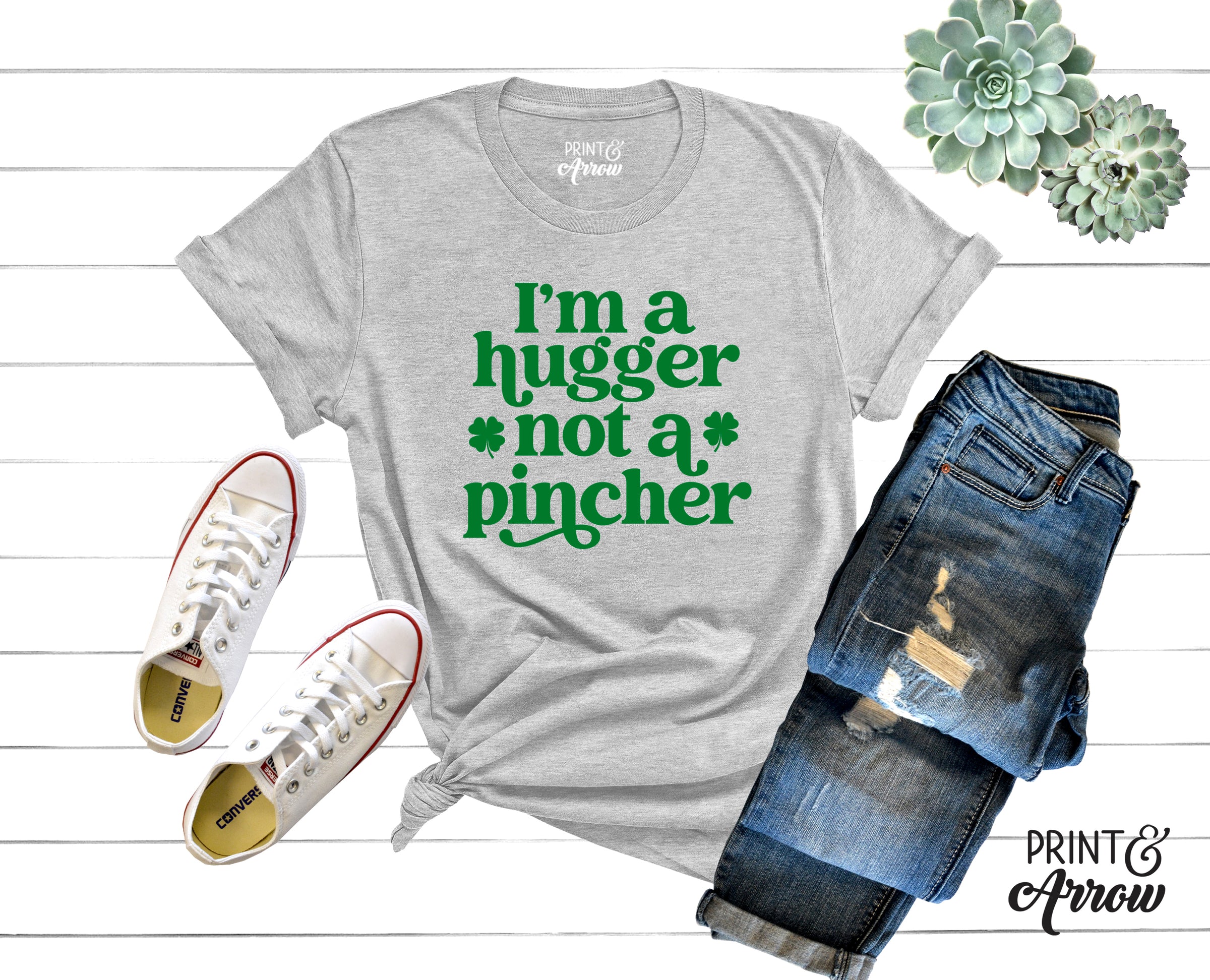 Spread the love with our “I’m a Hugger Not a Pincher” shirt, the perfect funny St. Patrick’s Day tee with a sweet twist. This cute Irish graphic t-shirt is ideal for festive celebrations, casual outfits, and pinch-free fun. A cozy unisex shirt that makes a great St. Patrick’s Day gift or holiday outfit staple.